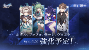 【3/13更新】ver4.2 性能調整まとめ(ホタル、フォフォ、ゼーレ、ヴェルト)【崩壊スターレイル】【リーク】【ver4.2】 2026 3/14 2026年3月13日2026年3月14日 3/17 夜更新予定 目次ホタル 性能変更情報 変更ログ 4.1.52 4.1.53 4.1.54 4.1.55 フォフォ 性能変更情報 変更ログ 4.1.52 4.1.53 4.1.54 4.1.55 ゼーレ 性能変更情報 変更ログ 4.1.52 4.1.53 4.1.54 4.1.55 ヴェルト 性能変更情報 変更ログ 4.1.52 4.1.53 4.1.54 4.1.55 ver4.0リーク この記事が気に入ったら フォローしてね! Follow @celestia_ge 【3/12更新】愉悦開拓者の性能詳細【崩壊スターレイル】【リーク】【ver4.2】 関連記事 【1/30更新】ver4.0で追加される新光円錐、新遺物について【崩壊スターレイル】【リーク】【ver4.0】 2026年1月6日 【1/30更新】ver4.0 性能調整まとめ(花火、ブラックスワン)【崩壊スターレイル】【リーク】【ver4.0】 2026年1月4日 【1/30更新】火花の性能詳細【崩壊スターレイル】【リーク】【ver4.0】 2026年1月4日 【1/30更新】爻光(こうこう)の性能詳細【崩壊スターレイル】【リーク】【ver4.0】 2026年1月4日 コメント コメント一覧 (58件) あ 3 返信 重ねた推理で笑顔にジャンプ!名探偵 1 2 返信 キュアアンサー! 1 返信 銀河攻略組とかいうデマ巻き散らかすインプ稼ぎなんで許されてるのかわからん 5 返信 敵HPとか基礎ステの投稿だけしてたらいいんだけどなあ 編成とか目標ステになったライト層騙す害悪 返信 コメ欄できたんや 2 返信 ホタカスほんま覇権やな 4 9 返信 前回強化のケイリュウと刃はゴミのままだったけど今回のホタルゼーレは期待できんの? 6 返信 できない寵愛偏愛受けてるホタルはまだしもゼーレは特に 俺たちはギリギリのところで夢を見ている 5 返信 ホヨバが大好きなゼーレ、ブローニャ、黄泉あたりは超強化くると思ってる。 3 2 返信 キャラ人気があって売れるから大好きなんであって 開発の趣味だけでキャラ推ししてるわけじゃないんだ なぁキュレネ 返信 ヴェルトに期待だわ、前例作ってくれればすり抜けのダメージが緩和される 14 1 返信 ゼーレは強くなくてもいいから変なロール付けだけはやめてくれ いきなり追加攻撃キャラとかになったりするのが1番萎える 行動の多さで圧倒する古典的巡狩であってくれ 5 2 返信 トパーズとかいう追加攻撃PTで使えますって顔して一回もtier1に上がってない女も救ってくれ 12 返信 恒常と交換枠は狙って好きなとこまで凸れるから強化来ても相応の強さにしかならないだろうな 1 返信 言うてダブりを重ねてこうやく交換できるから普通にガチャ引いた方が楽っていうね 大量にダブらせてそうな配信者なんかは自力で凸しちゃってるだろうし 返信 長期間見据えるのが何でしたっけ 返信 前回の刃と鏡流のあのゴミ調整で大炎上しないあたりこのゲームのユーザーだいぶこの運営に毒されてるし、運営もそれで完全にユーザーのこと舐め切ってるよね 今回の人選もそうで、普通もっと初期のキャラの強化が望まれてるのに、ホタルとかフォフォとか意味分からんまだいらないところ強化してくるのは完全に売上のことしか考えてないのが明白だし 6 9 返信 引かれてないキャラ強化しても喜ぶやつおらんだろ アルジェンティとホタルだったらホタル強化したほうが喜ばれるよ 31 10 返信 刃鏡流は記憶もHCもつまみ食いするドカ食いバカ野郎だっただけで性能はそこまでゴミでもない 好きな奴は渋い顔しながら使えるようになったから大きな進歩 9 6 返信 サンプルが少ないからなんとも言えないけど羅刹、ルアン、トパーズの伴星落ちしたキャラには強化すら来ないのかな… 2 返信 言っても刃ゼーレはすり抜けでも出るようになって恒常のヴェルトまで来たから単にその時じゃないってだけじゃないかな。その時っていつだよって言われたらまあ…とはなるが 4 返信 トパーズあたりはずっと可哀想だから早めに強化くることを願ってるよ。 11 返信 トパーズは不死途に喰われた 返信 シナズの倍率が3分の一になった代わりにホタルの倍率が3倍になってて草 4 4 返信 ホタルかなり強化されたな 自前の超撃破倍率+100%、2凸のターン制限緩和はデカい 2 4 返信 フォフォまじで伴星かこれ 2 返信 フォフォの1凸速度100%は流石に間違いだよね? 返信 ヨウおじの行動遅延効果も強化されててちょっと嬉しい 1 返信 デバフ2ターンしかないから2凸必須か? 返信 2凸ターン制限緩和は嬉しいけど結局停雲入りでも間に合わない時あるから発動条件の緩和もこれからの調整で着くといいな 1 返信 ヴェルトめちゃくちゃ強くなったな 3 返信 おい、恒常キャラがここまで強化もらったのに限定のゼーレの強化しょぼくね?ホヨバが大好きなあのゼーレやぞ?それとも今後、別形態の最強ゼーレとブローニャを出す予定でもあるのか? 4 2 返信 ゼーレ6凸でようやく追加ターン得られるようになったのうれしいけど喜んでいいのかわからない 元が欠陥すぎるだけなんじゃないか…… 全体の火力自体は2倍強ぐらいになってそうだけど元が元だから何とも言えん 1 返信 強化されたのに意味ない